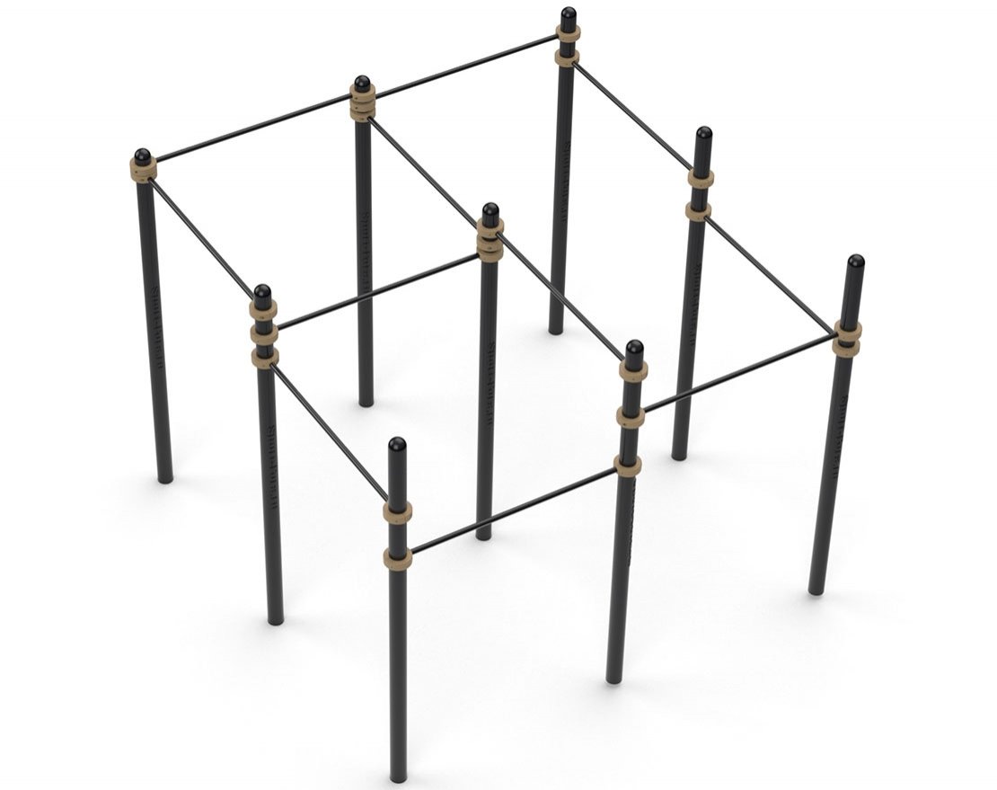 Данная конструкция состоит и 9 столбов 11 перекладин диаметром 34 мм. Комплекс предназначен для базовых подтягиваний, а также для выполнения разнообразных фристайл-элементов для любителей и продвинутых паркурщиков.