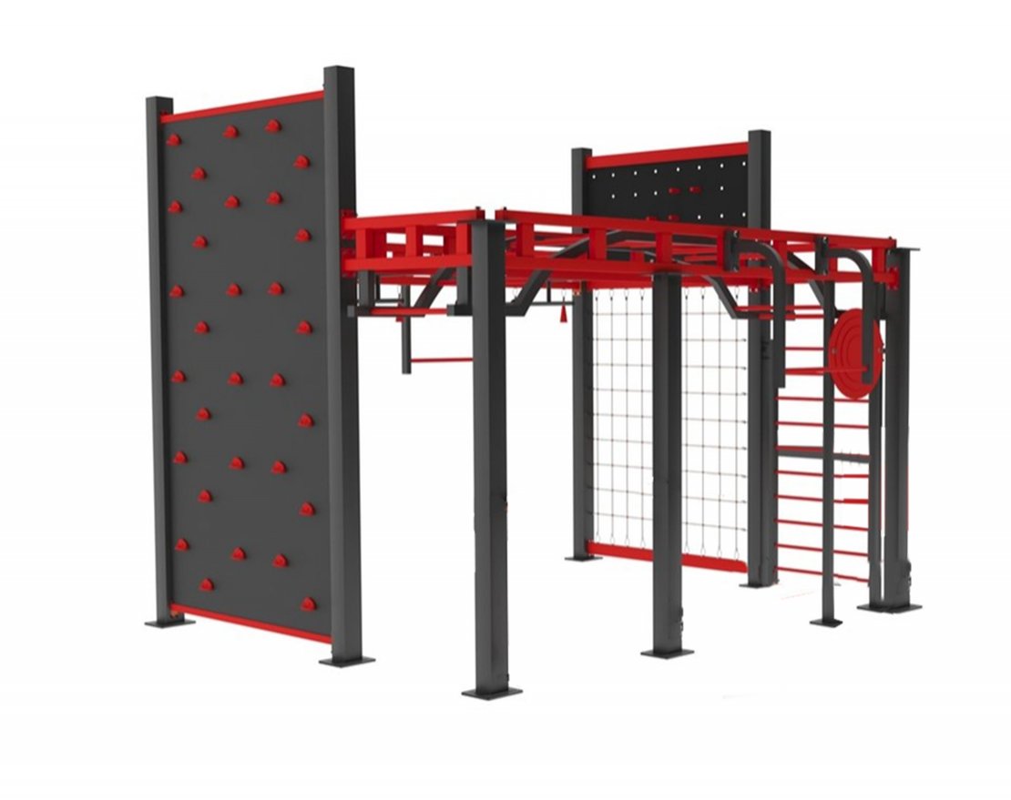 • В комплект входит: турник, шведская стенка, рукоход, гладиаторская сетка, скалодром, скамья