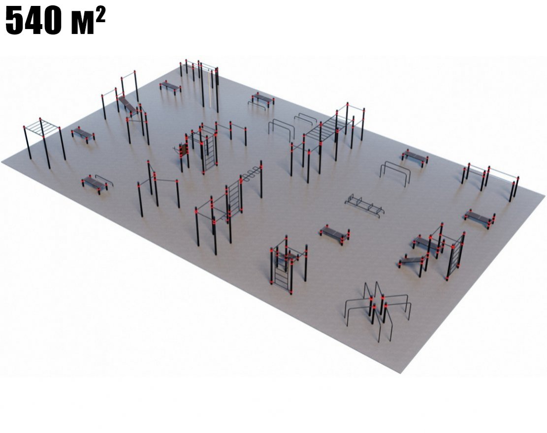 В состав площадок входят различные спортивные снаряды, такие как перекладины для подтягиваний и отжиманий, турники, брусья, рукоходы, шведские стенки и другие.