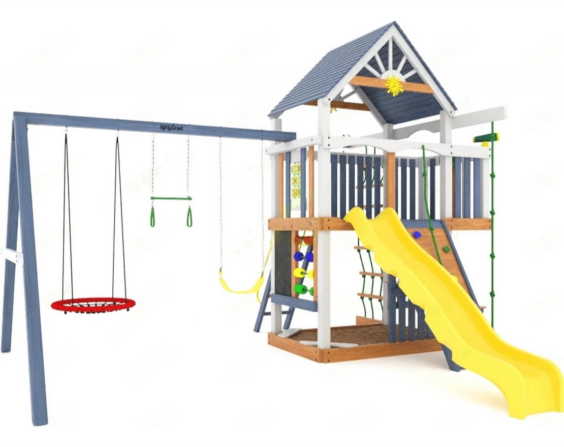Этот игровой комплекс станет отличным местом для игр и развития детей на свежем воздухе.