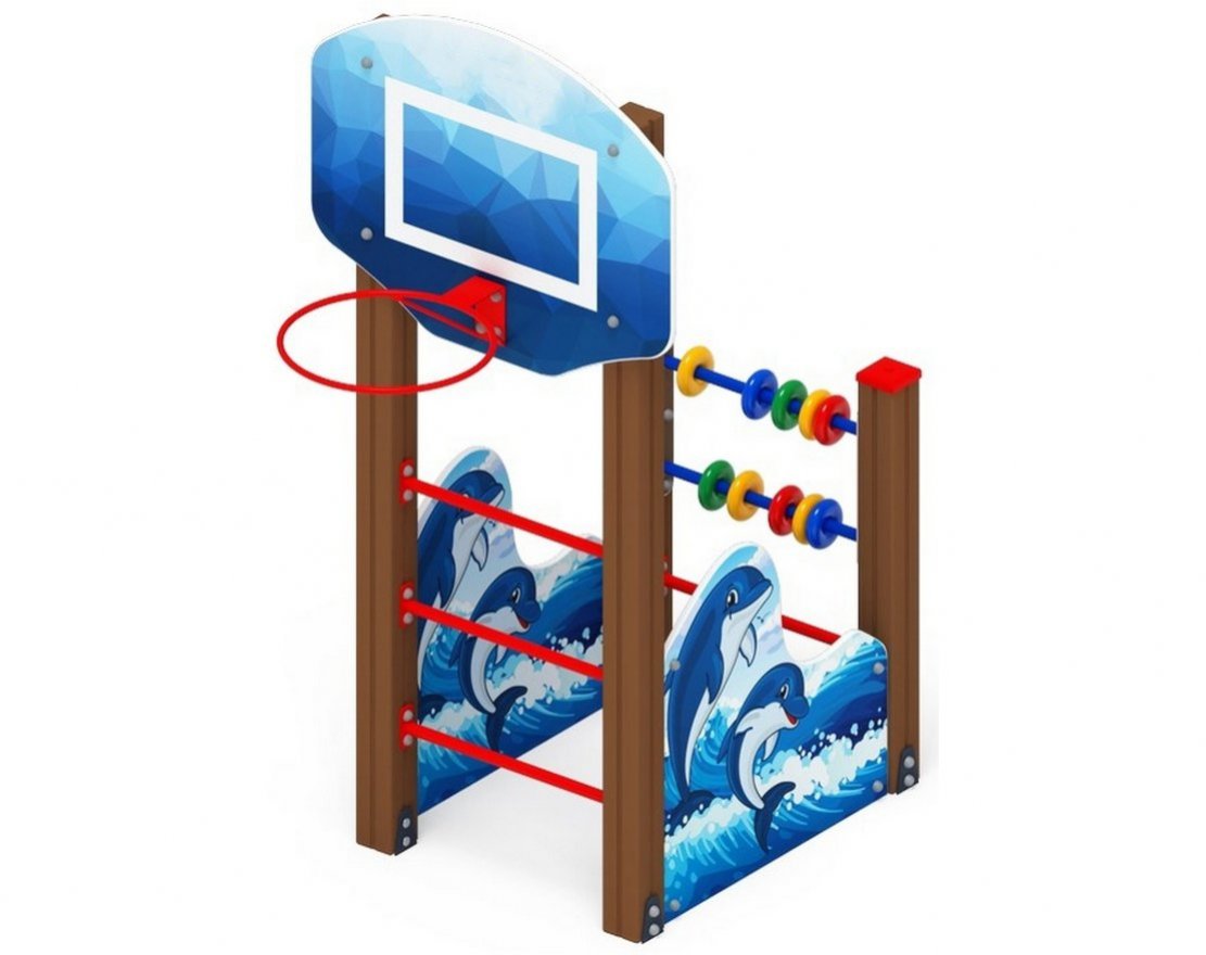 Борт выполнен из березовой фанеры толщиной 18мм, и габаритами 820х800. Фанера имеет тщательную обработку торцов и окраску желтого цвета. Стилизован под дельфина.