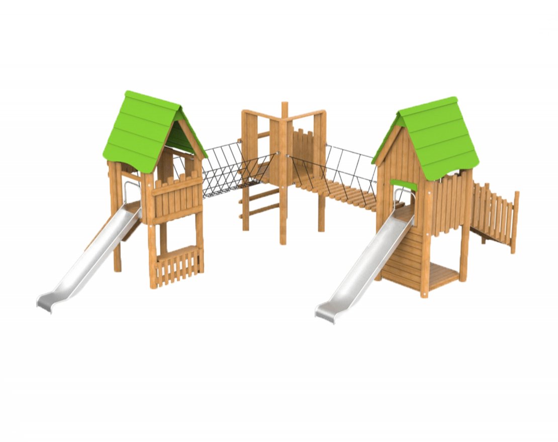 Игровой комплекс «Деревенька 895.09.02 исп. 2» предназначен для детских площадок, детских садов, школ, парков, дворов и мест отдыха. Он поможет организовать досуг и физическое развитие детей.