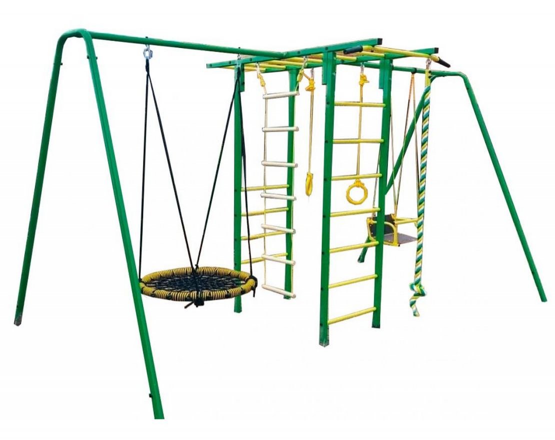 - Материалы: комплекс изготовлен из высококачественных материалов, устойчивых к атмосферным воздействиям и механическим повреждениям. Каркас металлический.