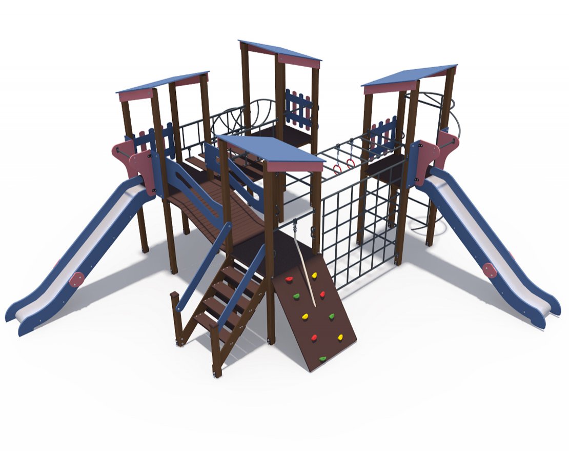 • В комплект входит: рукоход, гладиаторская сетка, горка, скалодром, лестница, кольцевой лаз
