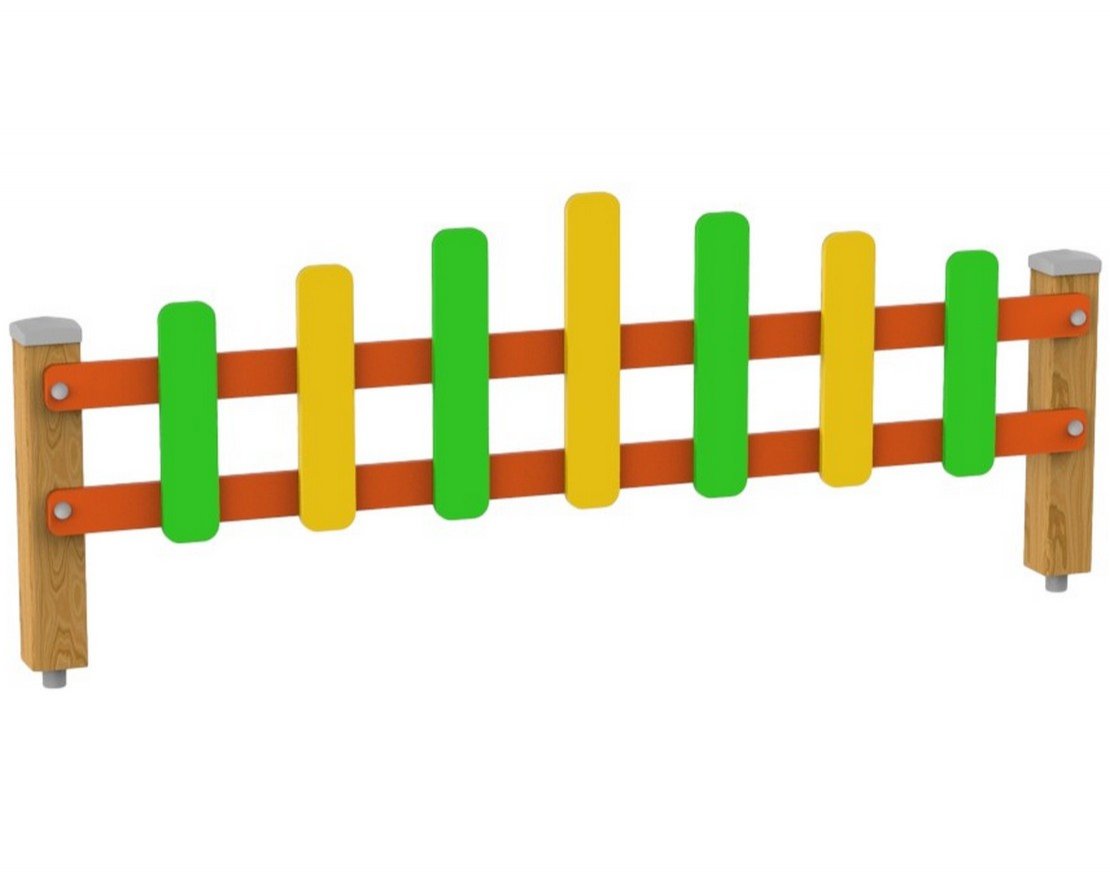 Ограждение устанавливается на детских игровых площадках и используется в качестве ограждения газонов и цветочных клумб. Препятствует выходу детей за пределы безопасной зоны, защищает от заезда автомобилей, является частью оформления площадки и общего дизайна двора. Ограждение отлично подойдет для любой детской уличной площадки, расположенной во дворе, школе, детском саду или парке. Ограждение представляет собой две стойки из бруса и планки.