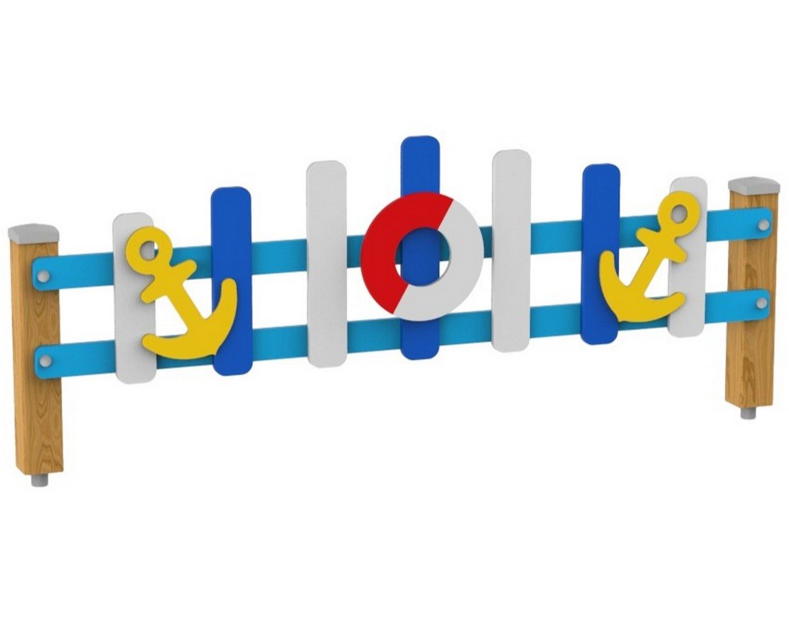 Ограждение «Море» с декором устанавливается на детских игровых площадках и используется в качестве ограждения газонов и цветочных клумб. Препятствует выходу детей за пределы безопасной зоны, защищает от заезда автомобилей, является частью оформления площадки и общего дизайна двора. Ограждение отлично подойдет для любой детской уличной площадки, расположенной во дворе, школе, детском саду или парке. Ограждение «Море» с декором представляет собой две стойки из бруса и планки с декоративными накладками.