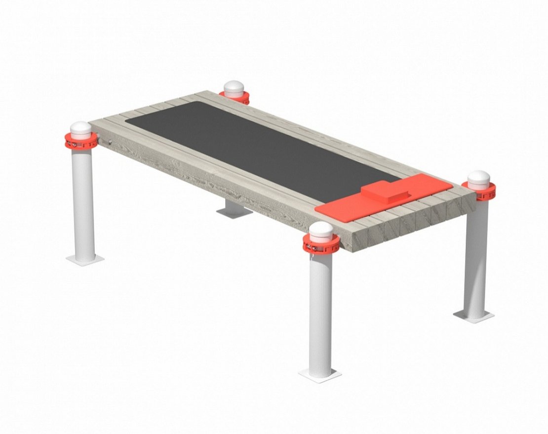 Помост для упражнения «Сгибание и разгибание рук лёжа на полу», размещённый во дворе, изготовлен из высококачественных материалов. Конструкция помоста выполнена из прочного стального профиля, предварительно обработанного защитным цинковым покрытием, что обеспечивает его долговечность и устойчивость к воздействию погодных условий. В качестве материала для бруса использован влагостойкий материал, который гарантирует надёжность и отсутствие ограничений по сроку эксплуатации.