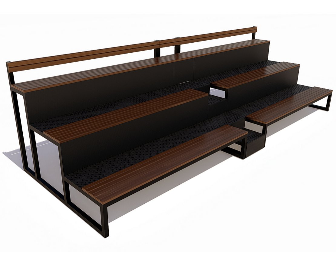 Конструкция трибуны отличается прочностью и надёжностью. Она предназначена для использования как в помещениях, так и на улице. Трибуна состоит из сидений в виде скамеек, выполненных из натуральной древесины и защищённых специальным покрытием. Для обеспечения безопасности на последнем ряду предусмотрена спинка-ограждение, а между рядами оставлен широкий проход.