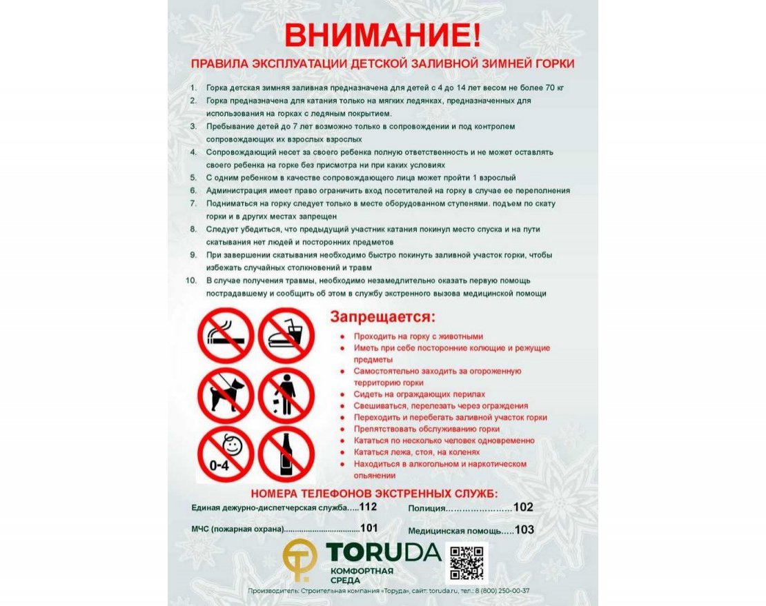 Информационная табличка TORUDA для зимней горки