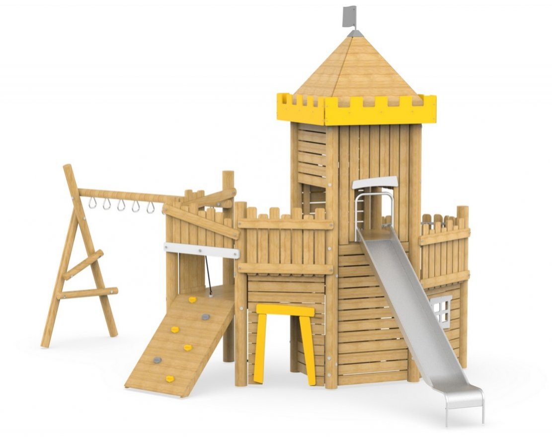Игровой комплекс «Замок 892.05.01» предназначен для установки на уличных площадках, во дворах, в парках и других местах. Он предназначен для физического развития и организации досуга детей.