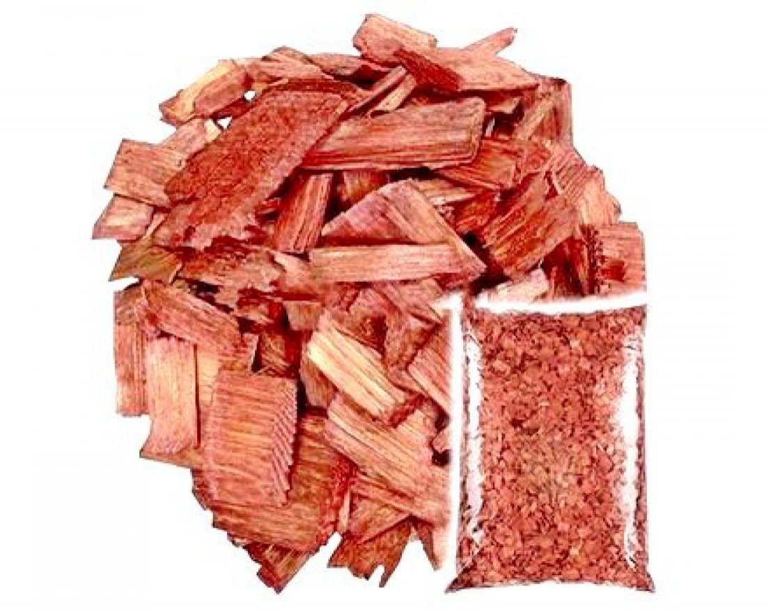 Красно-коричневую декоративную щепу регулярно используют в ландшафтном дизайне. Благодаря натуральным красителям, она не смывается водой и устойчива к выгоранию под солнечными лучами.