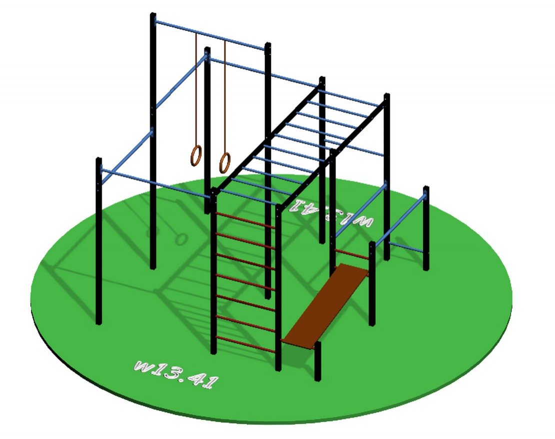 Workout w13.41 — это многофункциональный уличный спортивный комплекс, который можно установить как на придомовой территории, так и на даче. Комплекс предназначен для людей, которые хотят поддерживать хорошую физическую форму, но не имеют возможности посещать тренажёрный зал.