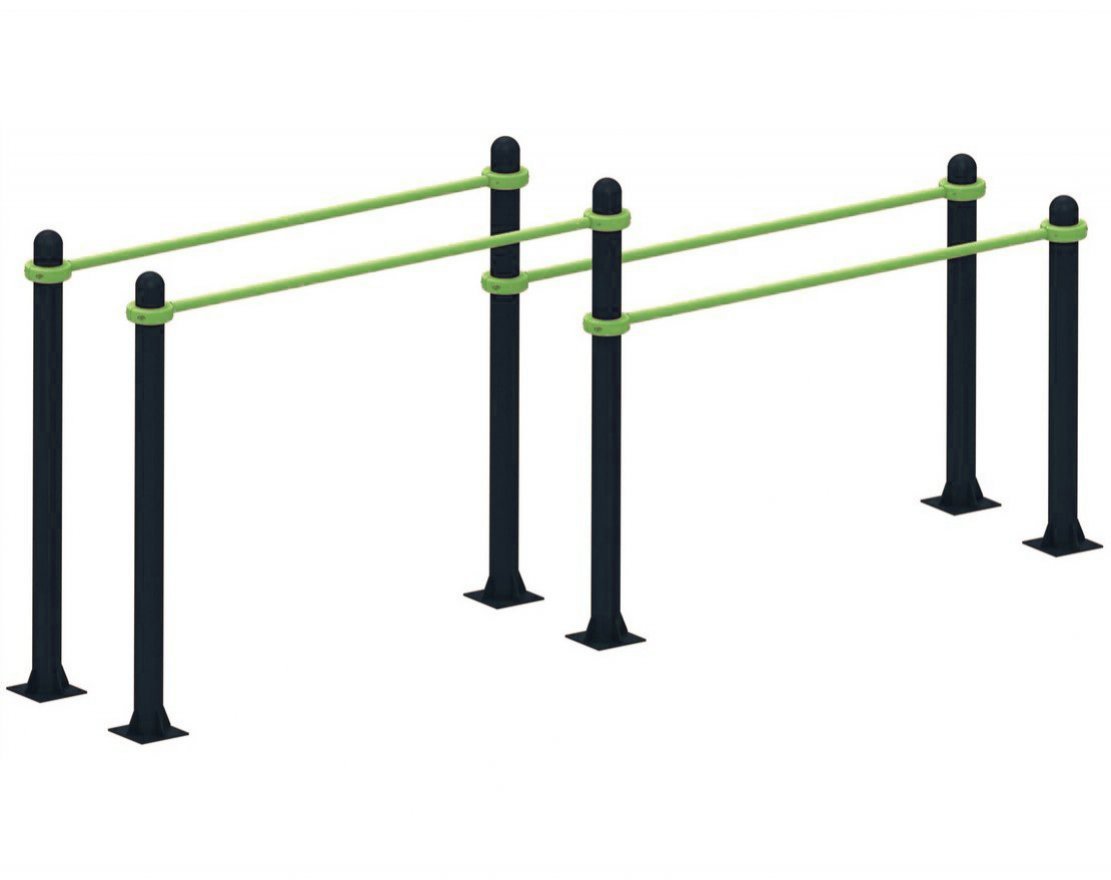 Элементы комплекса регулируются по высоте благодаря хомутам, что позволяет адаптировать его под любой рост. Также возможно менять расположение элементов воркаут-площадки в зависимости от ваших предпочтений.