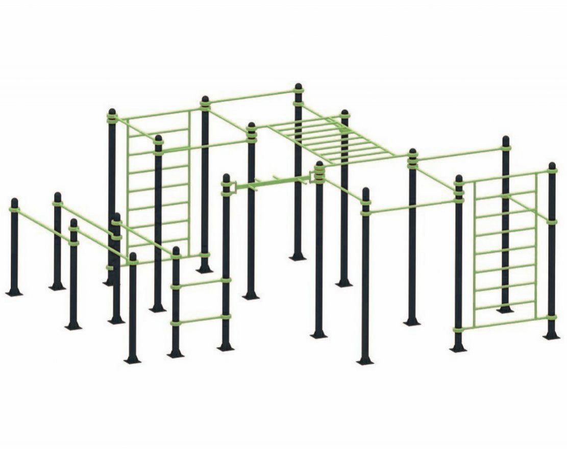 Большой уличный спортивный комплекс — это набор разнообразных спортивных снарядов, который позволяет активно заниматься физической подготовкой и выполнять множество гимнастических упражнений. Этот комплекс подойдёт для: