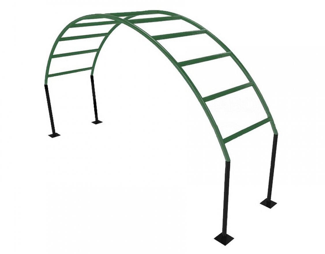 Лаз изготовлен из прочной металлической трубы и покрыт краской, устойчивой к неблагоприятным погодным условиям и ультрафиолетовым лучам.