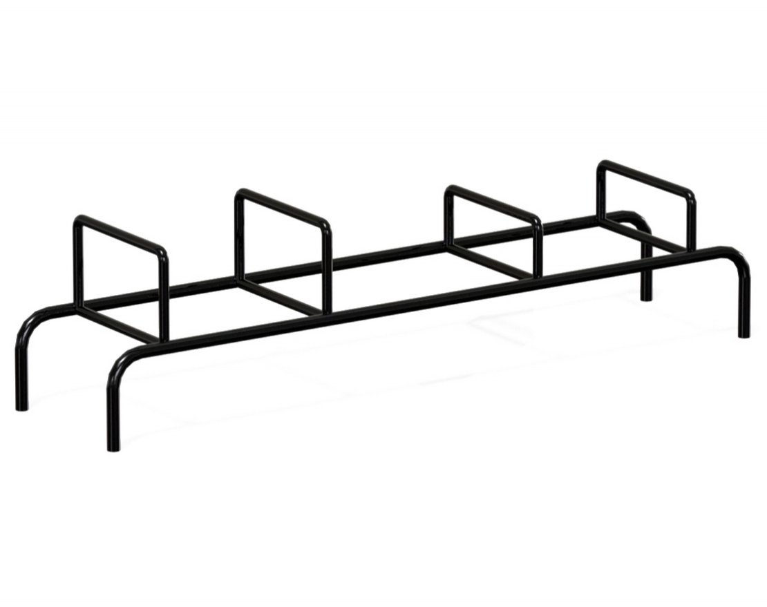 Монтаж стоек осуществляется бетонированием в землю на глубину до 50 см. Высота стоек составляет 60 см, длина — 240 см. Благодаря использованию порошковых красок для обработки металла, стойки устойчивы к воздействию влаги и могут использоваться на открытом воздухе в любую погоду.