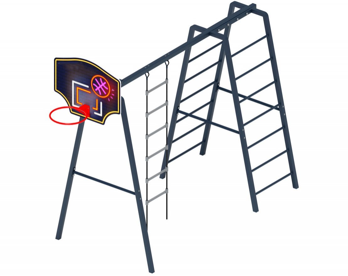 • В комплект входит: верёвочная лестница, шведская стенка, баскетбольное кольцо