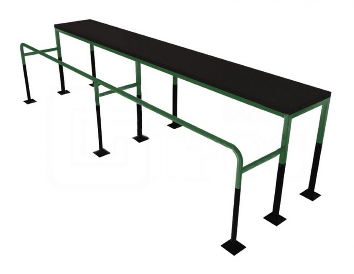 Скамейка изготовлена из высококачественных материалов, которые обеспечивают её долговечность и надёжность. Металлическая труба, покрытая полимерно-порошковой краской, защищает скамейку от воздействия влаги, солнца и других погодных условий. Деревянные детали обработаны специальной пропиткой, что предотвращает гниение и деформацию.