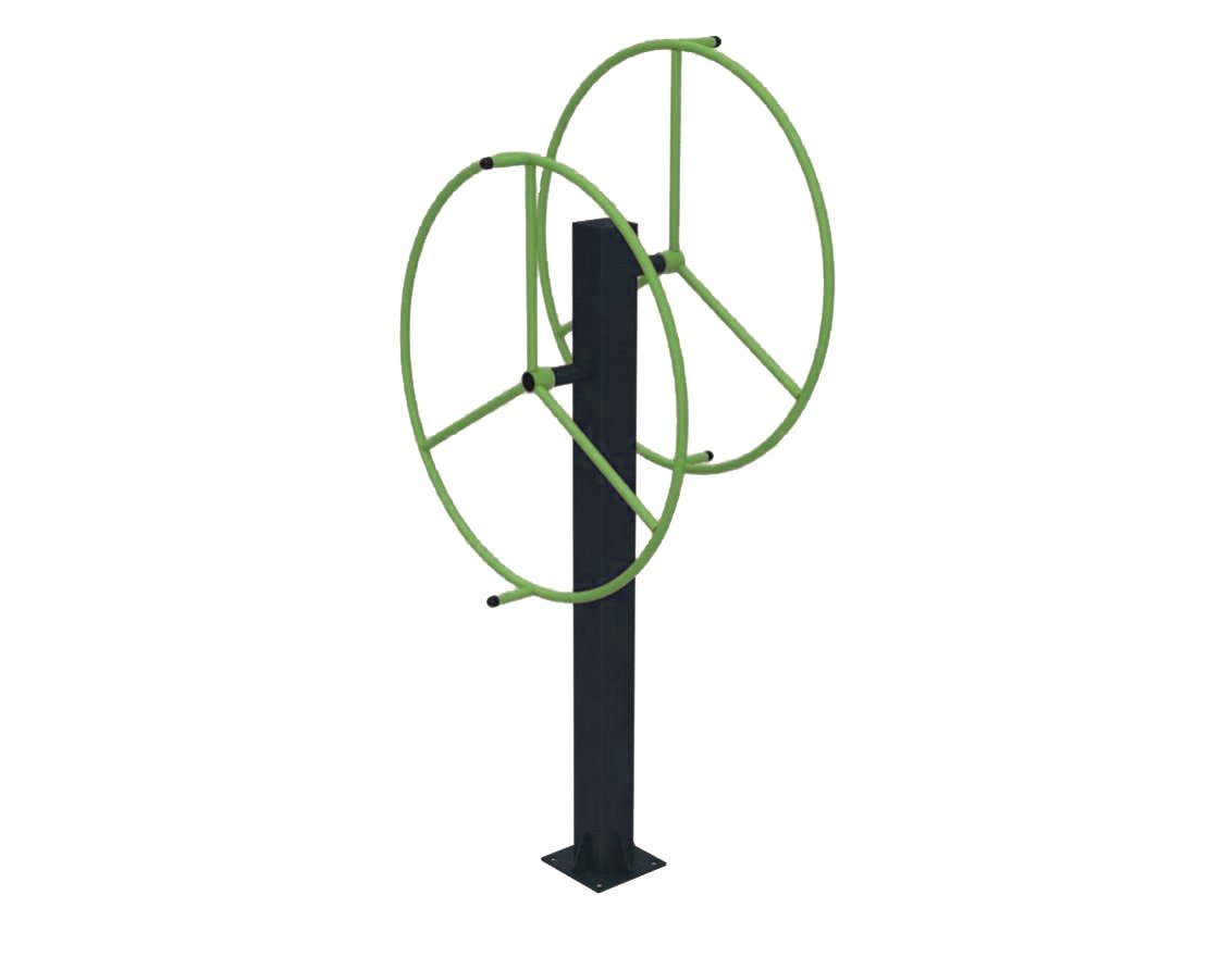 Уличный тренажёр «Рули» больших размеров предназначен для тренировки и укрепления плечевых суставов, мышц плечевого пояса и развития координации движений. Изделие выполнено из прочной и долговечной стали. Тренажёр рассчитан на одновременную тренировку двух пользователей. Основные характеристики: