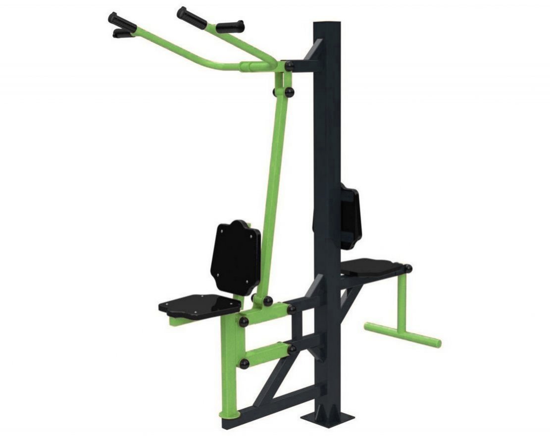 Тренажёр «Флекс» и тренажёр «Вертикальная тяга» — это изделия из прочной стали с полимерным покрытием, которые предназначены для тренировок мышц ног и верхней части бёдер, а также для тренировки трицепса и мышц груди соответственно. Тренажёры оснащены подвижной рычажной системой и рассчитаны на двух пользователей одновременно.