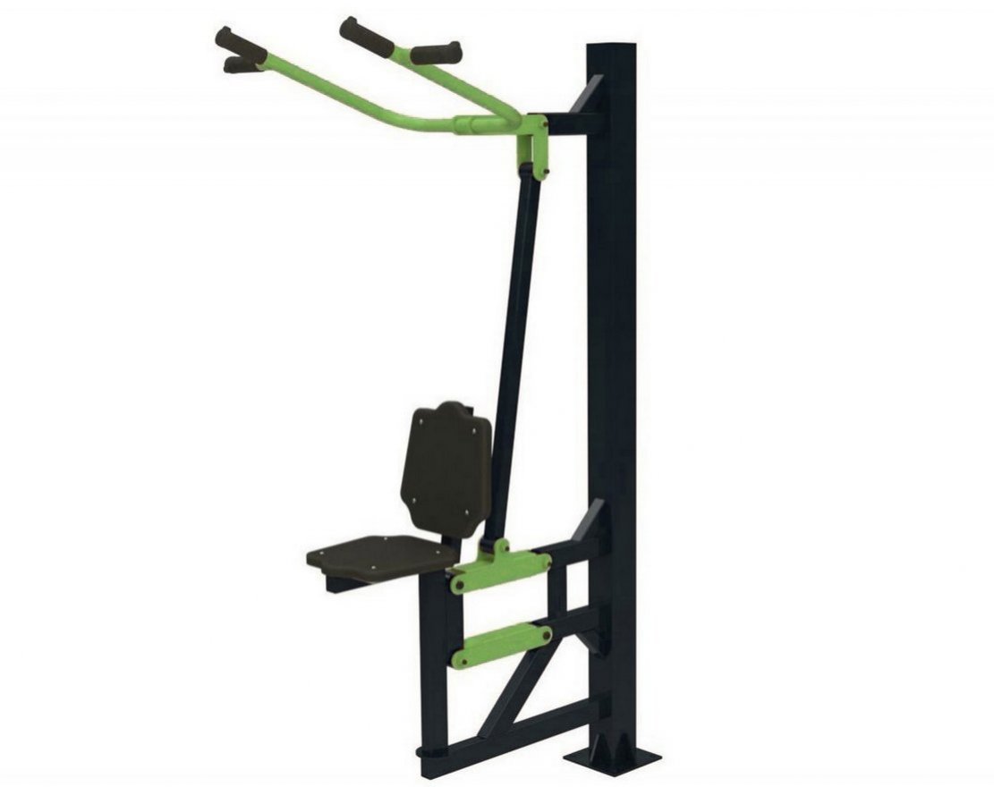 Уличный тренажёр «Вертикальная тяга» — это изделие из прочной стали с подвижной рычажной системой, предназначенное для тренировки мышц трицепсов, груди и других групп мышц. Тренажёр оснащён сиденьем и рифлёными рукоятками из антивандального пластика, которые обеспечивают комфорт и безопасность во время тренировки.