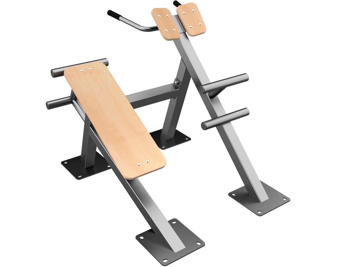 Уличный тренажёр «Скамья для пресса плюс гиперэкстензия» — это функциональная конструкция, которая предназначена для тренировок на свежем воздухе. Тренажёр позволяет тренировать мышцы нижней части спины и брюшной пресс, а также мышцы ягодиц.