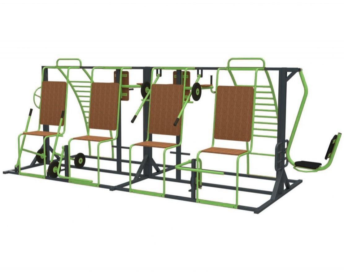 Представляем многофункциональный тренажёр, разработанный для тренировок на открытом воздухе и развития силы. Этот тренажёр предназначен для одновременной тренировки 10 пользователей и подходит для укрепления, восстановления и развития различных групп мышц, включая мышцы рук, ног и туловища.