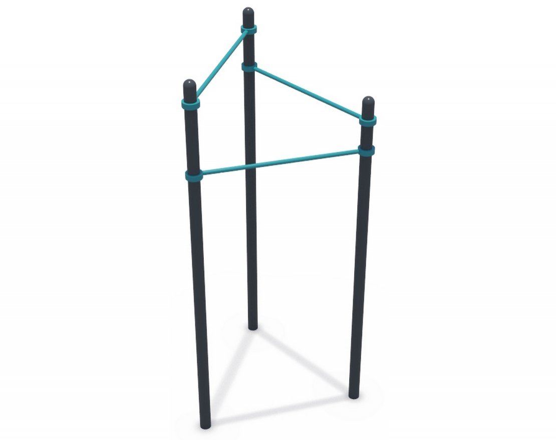 Спортивный комплекс предназначен для занятий спортом на свежем воздухе для детей старше 13-ти лет. Комплекс состоит из трёх вертикальных опорных столбов и трёх турников, которые фиксируются на столбах с помощью специальных хомутов.