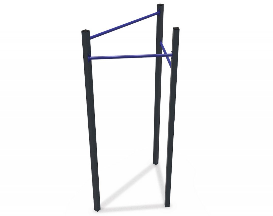 Спортивный комплекс предназначен для детей старше 13-ти лет. Он представляет собой вертикальную конструкцию из трёх опорных столбов и турников. Опорные столбы выполнены из профильной прямоугольной трубы размером 60×60 мм, а турники — из металлических перекладин диаметром 42 мм и 32 мм.*