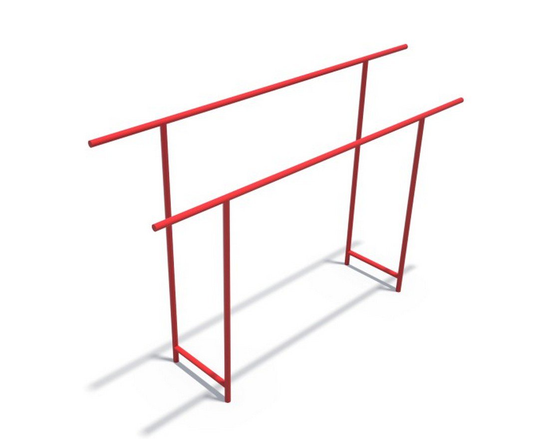 - Брусья выполнены из металла сечением 42 миллиметра. Металлические детали покрыты порошковой краской в заводских условиях, что обеспечивает их долговечность и устойчивость к внешним воздействиям.
